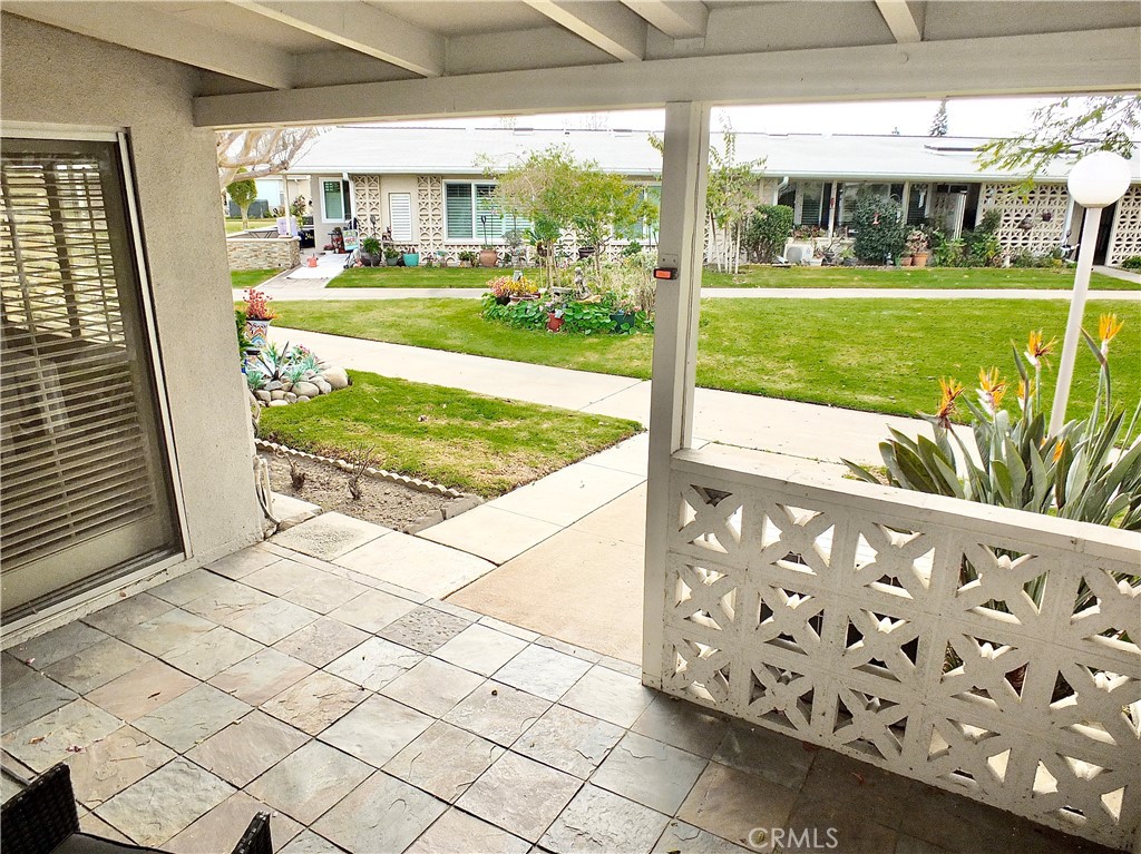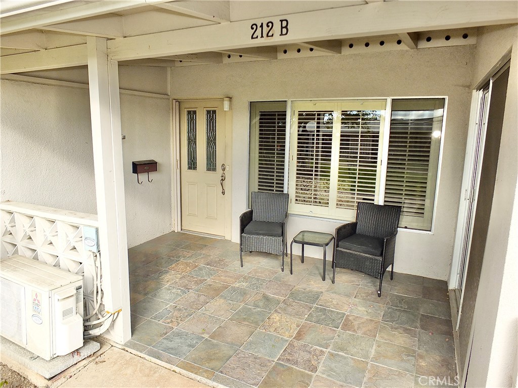 Charming and expanded one-bedroom, one-bathroom cottage nestled in the resort-like community of Leisure World, Seal Beach. This cozy home features leaded glass windows that open into a spacious living room with a heat pump, air conditioning unit, plantation shutters, and a picture window overlooking an inviting greenbelt. The kitchen is equipped with built-in Leisure World appliances, including a stove, oven, refrigerator, and an added microwave. It also boasts newer counters and a skylight, filling the space with natural light. The bathroom is updated with a skylight and newer counters for a bright and modern touch. The expanded bedroom includes two wardrobe closets, a sitting area ideal for a home office, and sliding glass doors that open to a private rock-tiled patio with serene greenbelt views and ocean breezes. Plantation shutters throughout add a touch of elegance. Additional highlights include laminate flooring, fresh paint, and move-in-ready condition. Relax and enjoy the view from the patio or take advantage of the community's incredible amenities. Leisure World offers over 200 clubs and activities, including a nine-hole par-three golf course, swimming pool, jacuzzi, gym, bocce ball, shuffleboard, billiards, woodworking, arts and crafts rooms, amphitheater, library, and a health care center. This home is conveniently located near Seal Beach's restaurants, shopping, stunning sunsets, and coastal charm. Parking Carport 113, Space 3.