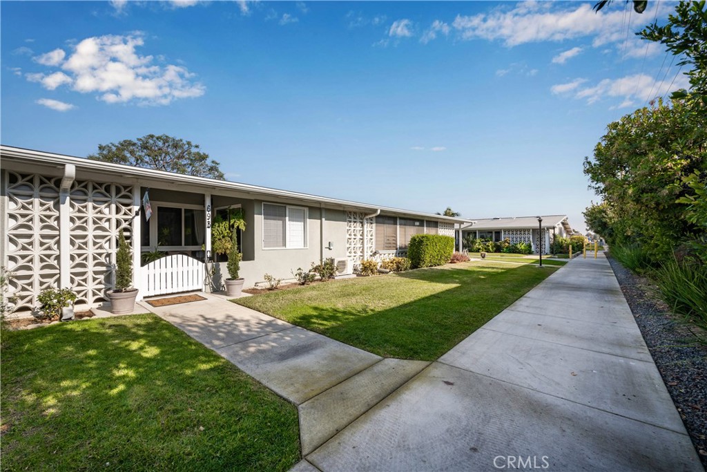 Charming cottage vibes in this partially expanded 1 bedroom 1 bathroom in Mutual 2. As you approach this private location you are greeted with a custom wooden entry gate, tiled patio with newer dual pane windows and custom outdoor sconces. Inside you have many upgrades including fresh paint throughout with redone electrical outlets. The kitchen is illuminated by open/closable skylight, adorned by new cabinet hardware and newer laminate flooring. Inside the bathroom you'll find updated vanity lighting and open/closable skylight. For those needing an extra space for your future home, this one bedroom has a fantastic expansion accommodating those with large furniture or needing an office or craft room in front with it's very own slider to the patio. Don't forget this home has an AC heat pump recently installed! Come see why 69B in Mutual 2 is so special! SENIOR COMMUNITY-OFFERS THE FOLLOWING AMENITIES: (CARPORT 33, SPACE 23) 9 Hole Golf Course, Swimming Pool, Jacuzzi, Gym, Table Tennis, Shuffle Board, Billiards, Pickle Ball, and Bocce Ball courts. Amphitheater, 6 Clubhouses featuring: Art Room, Sewing, Crafts, Wood Shops, Lapidary, Pool Tables, Over 200 Clubs, LWSB is a Security-Guard-Gated Community. Also Library, Friends of Library Bookstore, Credit Union, Health Care Center, Pharmacy and Post Office.