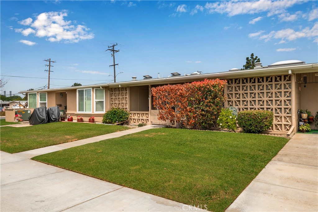 SUPER CLEAN 2 bedroom, 1 bath in Mutual 10. Large wrap around patio with brand new indoor outdoor carpet, large storage unit and oversized skylight. Entire unit has brand new laminate floors, baseboards and fresh coat of paint. Double pane windows in living room with plantation shutters. Kitchen has island with granite countertops and extra storage, ceiling fan and mutual appliances. Skylights in kitchen and bathroom. Shower has been cut down for easy access. Double pane slider in bedroom leads out to patio. Lots of upgrades for this price! (CARPORT 120 SPACE 2) SENIOR COMMUNITY-OFFERS THE FOLLOWING AMENITIES: 9 Hole Golf Course, Swimming Pool, Jacuzzi, Gym, Table Tennis, Shuffle Board, Billiards, Pickle Ball, and Bocce Ball courts. Amphitheater, 6 Clubhouses featuring: Art Room, Sewing...