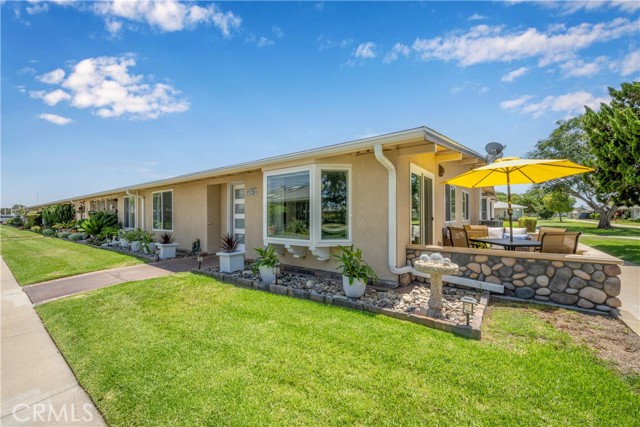 Step into this fully reimagined home in Mutual 5, where modern luxury meets thoughtful design. The open-concept living and dining areas are filled with natural light, thanks to double-pane windows, sliding glass door to an extended patio, and an oversized skylight. Recessed lighting and bay window with automatic drapes add warmth and sophistication. The living room opens to a spacious greenbelt, offering the feel of a private yardaEUR"perfect for relaxing or entertaining. The chefaEUR(tm)s kitchen is a true showstopper, featuring matte quartz countertops, sleek cabinetry, and all-newer stainless steel appliances. An extended peninsula invites conversation and connection while meals are being prepared. Around the corner, the main bathroom boasts a custom vanity with quartz countertops, an expanded skylight, and a glass-enclosed tile shower with all-new fixtures. The spacious primary bedroom has been fully expanded and includes a walk-in closet, added closet space for the fashionista in you and recessed lighting. Guests will feel right at home with their own comfortable quarters, complete with an ensuite 1/2 bathroom overlooking the green. In the front of the home you'll find an additional room for your own home office complete with desk and storage. Added upgrades include central HVAC an