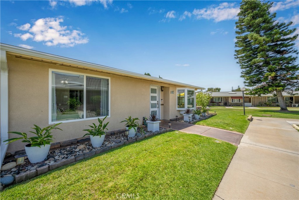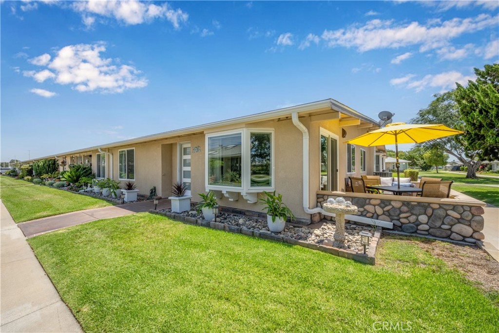 Step into this fully reimagined home in Mutual 5, where modern luxury meets thoughtful design. The open-concept living and dining areas are filled with natural light, thanks to double-pane windows, sliding glass door to an extended patio, and an oversized skylight. Recessed lighting and bay window with automatic drapes add warmth and sophistication. The living room opens to a spacious greenbelt, offering the feel of a private yard--perfect for relaxing or entertaining. The chef's kitchen is a true showstopper, featuring matte quartz countertops, sleek cabinetry, and all-newer stainless steel appliances. An extended peninsula invites conversation and connection while meals are being prepared. Around the corner, the main bathroom boasts a custom vanity with quartz countertops, an expanded skylight, and a glass-enclosed tile shower with all-new fixtures. The spacious primary bedroom has been fully expanded and includes a walk-in closet, added closet space for the fashionista in you and recessed lighting. Guests will feel right at home with their own comfortable quarters, complete with an ensuite 1/2 bathroom overlooking the green. In the front of the home you'll find an additional room for your own home office complete with desk and storage. Added upgrades include central HVAC and an in-unit washer/dryer--everything you need for comfort and convenience. Come and enjoy all the upgrades you could ask for in a home here in this wonderful community! THE COMMUNITY OFFERS THE FOLLOWING AMENITIES: 9 Hole Golf Course, Swimming Pool, Jacuzzi, Gym, Table Tennis, Shuffle Board, Billiards, Pickle Ball, and Bocce Ball courts. Amphitheater, 6 Clubhouses featuring: Art Room, Sewing, Crafts, Wood Shops, Lapidary, Pool Tables, Over 200 Clubs, LWSB is a Security-Guard-Gated Community. Also Library, Friends of Library Bookstore, Credit Union, Health Care Center, Pharmacy and Post Office (CARPORT 68, SPACE 1).