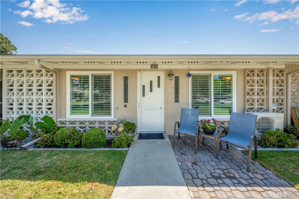 Welcome to your wonderful greenbelt location! This beautifully expanded 1 bed / 1 bath home is bursting with charm -- and yes, it even comes with its very own golf cart pad, ready to roll! Step inside to stylish laminate flooring throughout and a sleek mirrored storage closet up front. Need a home office or creative nook? You've got the perfect extra space built right in! The living room is light, bright, and breezy with a scraped ceiling, recessed lighting, plantation shutters and a powerful AC heat pump to keep things cool on those sunny SoCal days. The kitchen is a total showstopper -- featuring stunning quartz countertops, a chic tiled backsplash, and shiny stainless steel appliances (yes, including a microwave and dishwasher!). The bathroom is just as fresh with a quartz-topped van...