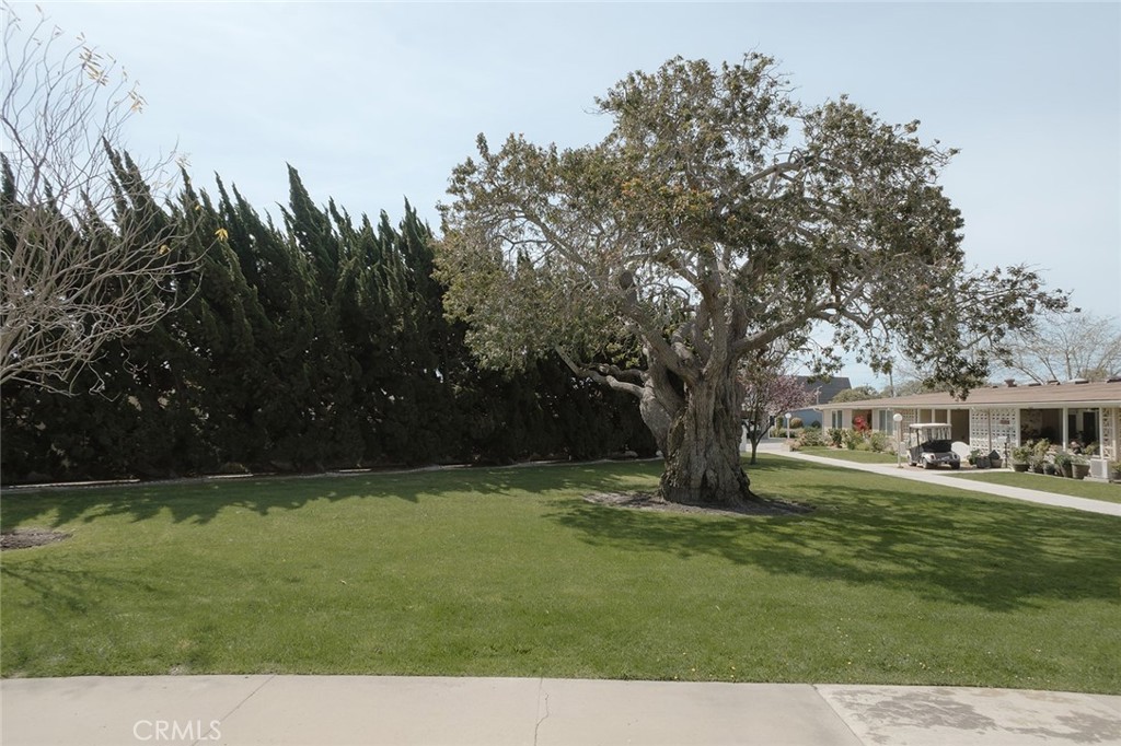 Welcome to this delightful, SOUTH FACING upgraded unit that sits in the center location of a large, private greenbelt, with a Mature Majestic Tree and a backdrop of Tall Pines, Lush Landscape and you have a full view of it all! This 1-Bedroom/1-Bath, in comparison, has great details making it stand above others. First: The parking space is very close to unit ***Carport Bldg. 3 - Space 24**** The location is tucked away at the end of the road, where there are extra parking spaces and unit has proximity to Main Gate for easy in/out access! The unit also is walking distance to the Southgate where you can walk to the Tuesday Farmer's Market and shopping. Second: The Unit has its own walk-path providing privacy, a Tall Entry gate, Large Ceramic Tiled patio, upgraded Front Door with Glass Panels and Satin Nickle Lever Handleset. Your interior space is bright and comfortable and well maintained. Features include light blonde-tone plank floors, with NEW Fresh Paint and Hampton Bay Ceiling Fan. Your spacious kitchen features an operable skylight that lets in fresh ocean air and natural light, Granite Countertops with Stainless Moen Sink, Accent Mirror, White Cabinetry with all NEW Oil Rubbed Bronze hardware, Newer GE Oven, Kenmore Refrigerator and Cooktop with Built-in Microwave Oven. All of those great features AND we include a NEWER (rarely used) LG Front Load Washer & Dryer! A rare find in a one-bedroom. The spacious bathroom features Granite Countertop, Modern Light Fixture, White Cabinetry w/NEW Hardware, NEW Glacier Bay Highboy, step-in shower, and another Skylight adding natural light and fresh ocean air. Your cozy bedroom has brand NEW thick plush carpet, a large wardrobe with overhead lighting, floor-to-ceiling window with a view of the greenbelt and large enough for a queen bed, side tables, and/or credenza. Immaculate living space that is turnkey with a view! This is a 55+ SUPER ACTIVE RETIREMENT COMMUNITY w/24-hour guarded-patrolled security, 200+ activity & Social Clubs, Swimming, Spa, 9 Hole-Golf Course, Fitness Center, Sport Court, Billiards, Amphitheater features Summer Concerts & Holiday Events, 6 Clubhouses, Health Care Center, Pharmacy, Post-Office, Car Wash, Art & Ceramics Room, Wood Shop, Bus System, Library, Day & Excursions and more! You can walk to the Farmer's Market, restaurants, shopping, and banks.