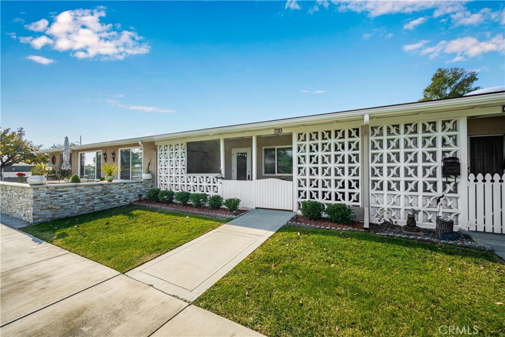 CHARMING 1 bedroom, 1 bath unit in Mutual 1. Enjoy your morning coffee and evening beverages on the beautiful tiled patio overlooking a large greenbelt. Custom front door leads to the living room that features newer luxury laminate floors and large double pane windows. Kitchen has granite countertops, refreshed cabinet handles, ceiling fan, newer white oven and white refrigerator. Bathroom has been upgraded to include granite countertops, cutdown shower, custom mirror and tile plank flooring. The cozy bedroom has separate entry door that leads out to the patio and ceiling fan. Very clean and ready to move in. SENIOR COMMUNITY-OFFERS THE FOLLOWING AMENITIES: (CARPORT 20, SPOT 47) 9 Hole Golf Course, Swimming Pool, Jacuzzi, Gym, Table Tennis, Shuffle Board, Billiards, Pickle Ball, and Boc...