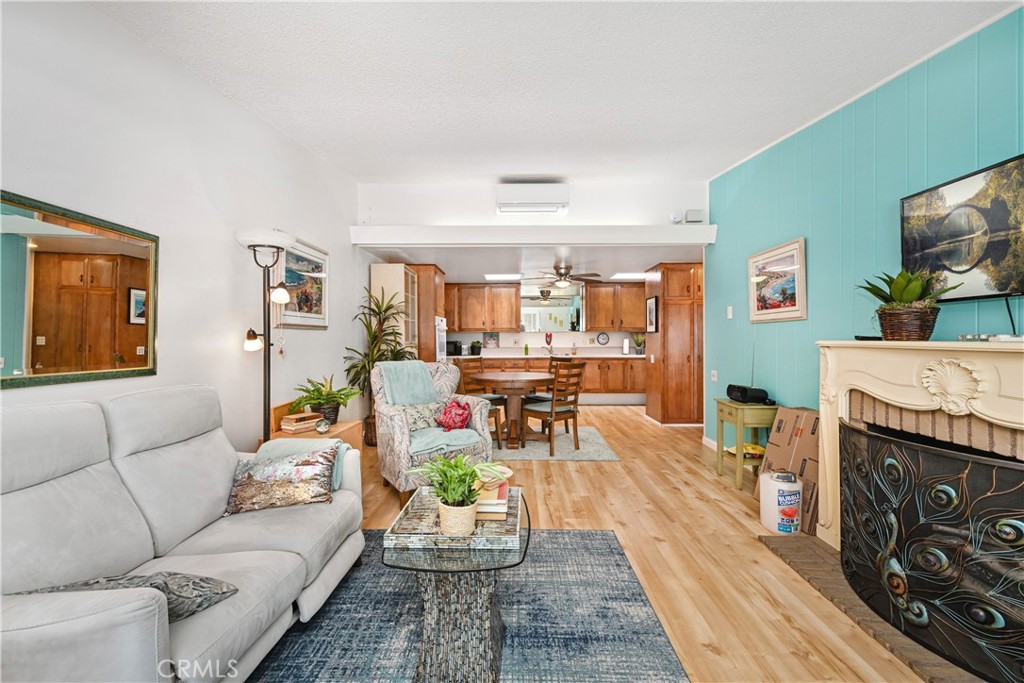 Welcome to this charming one-bedroom, one-bathroom gem that boasts an array of desirable features. As you step inside, you'll immediately appreciate the inviting atmosphere and meticulous maintenance. The kitchen is immaculate and functional with a new oven making meal preparation a pleasure. This is an expanded unit, providing extra square footage to unwind and relax with a view of the greenbelt. The laminate wood flooring throughout the unit adds warmth and style while making cleaning a breeze. With stackable laundry conveniently tucked away, this unit effortlessly combines modern living with comfort. Automatic sprinklers were thoughtfully installed in the front planter. This senior community offers the following amenities: 6 Clubhouses, over 200 clubs, an Amphitheater, 9 Hole Golf Course, Swimming Pool, Jacuzzi, Gym, Table Tennis, Shuffle Board, Billiards, Pickle Ball, and Bocce Ball courts. Also a Library, Friends of Library Bookstore, Credit Union, Health Care Center, Pharmacy and Post Office. This property has a Security Guard and is a gated community. In addition to all its features, this unit has been lovingly cared for and is impeccably clean, ensuring that you can move in with ease and truly make it your own. Don't miss the opportunity to call this delightful space your home. [Carport #28, Space #24]