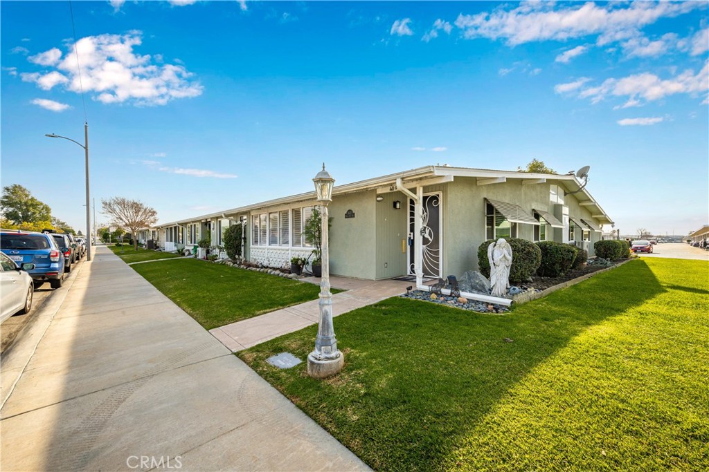 DRIVE UP location! Corner 2 bedroom, 1 bath that has been partially expanded. Enter through the custom security screen to an open floorplan with an enclosed patio for year round enjoyment. Some of the upgrades include high side expansion to allow for a separate dining area, large coat/storage closet, double pane windows and plantation shutters throughout. 4 skylights that bring in lots of natural light. Kitchen has stainless steel dishwasher, stainless steel microwave, kitchen island and mutual appliances. Built-in office cabinets that also features a murphy bed perfect for those overnight guests and can be tucked away when not being used. Bathroom has cutdown shower and WASHER/DRYER. Laminate floors and carpet throughout. (CARPORT 27, SPACE 55) SENIOR COMMUNITY-OFFERS THE FOLLOWING AMENITIES: 9 Hole Golf Course, Swimming Pool, Jacuzzi, Gym, Table Tennis, Shuffle Board, Billiards, Pickle Ball, and Bocce Ball courts. Amphitheater, 6 Clubhouses featuring: Art Room, Sewing, Crafts, Wood Shops, Lapidary, Pool Tables, Over 200 Clubs, LWSB is a Security-Guard-Gated Community. Also Library, Friends of Library Bookstore, Credit Union, Health Care Center, Pharmacy and Post Office.