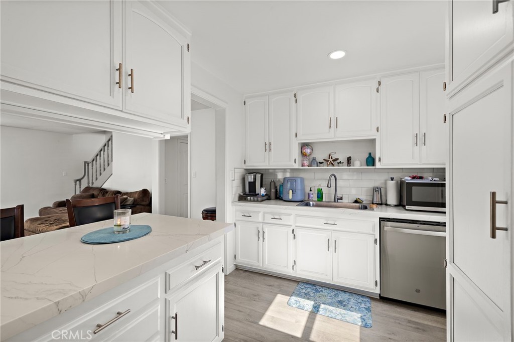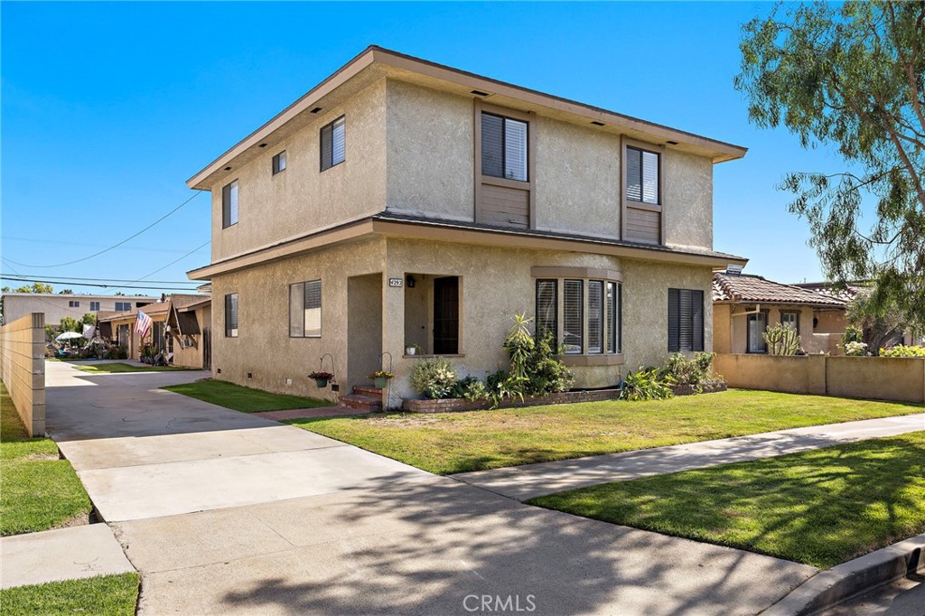Never been listed - first time on the market opportunity! This charming triplex offers a front house upgraded in 2023 and two detached units in the back. The two-story main house at 1,950 sqft with 3 bedrooms, 2 baths recently upgraded with vinyl floors throughout and a roof top deck. Two detached 900 sqft units in back both feature 2 bedrooms, 1 bath and 1 car garage, enclosed patio and one with wrap around backyard. The front house features a huge living room and dining area with bay window overlooking the front yard and opens to the upgraded kitchen. Kitchen features newer white cabinetry, quartz countertops, island with bar, subway tile backsplash, and stainless-steel appliances. Downstairs primary bedroom, huge closet and remodeled bathroom. Upstairs features a huge bonus room with fireplace, built-in cabinets, prep sink and two secondary bedrooms and bathroom. Bonus room sliding glass door leads the expansive roof top deck perfect for entertaining or relaxing. A 2 car oversized garage completes the front house. Located near award-winning Los Alamitos school district, shopping, and parks and recreation. Easy access to 405 and 605 freeways.